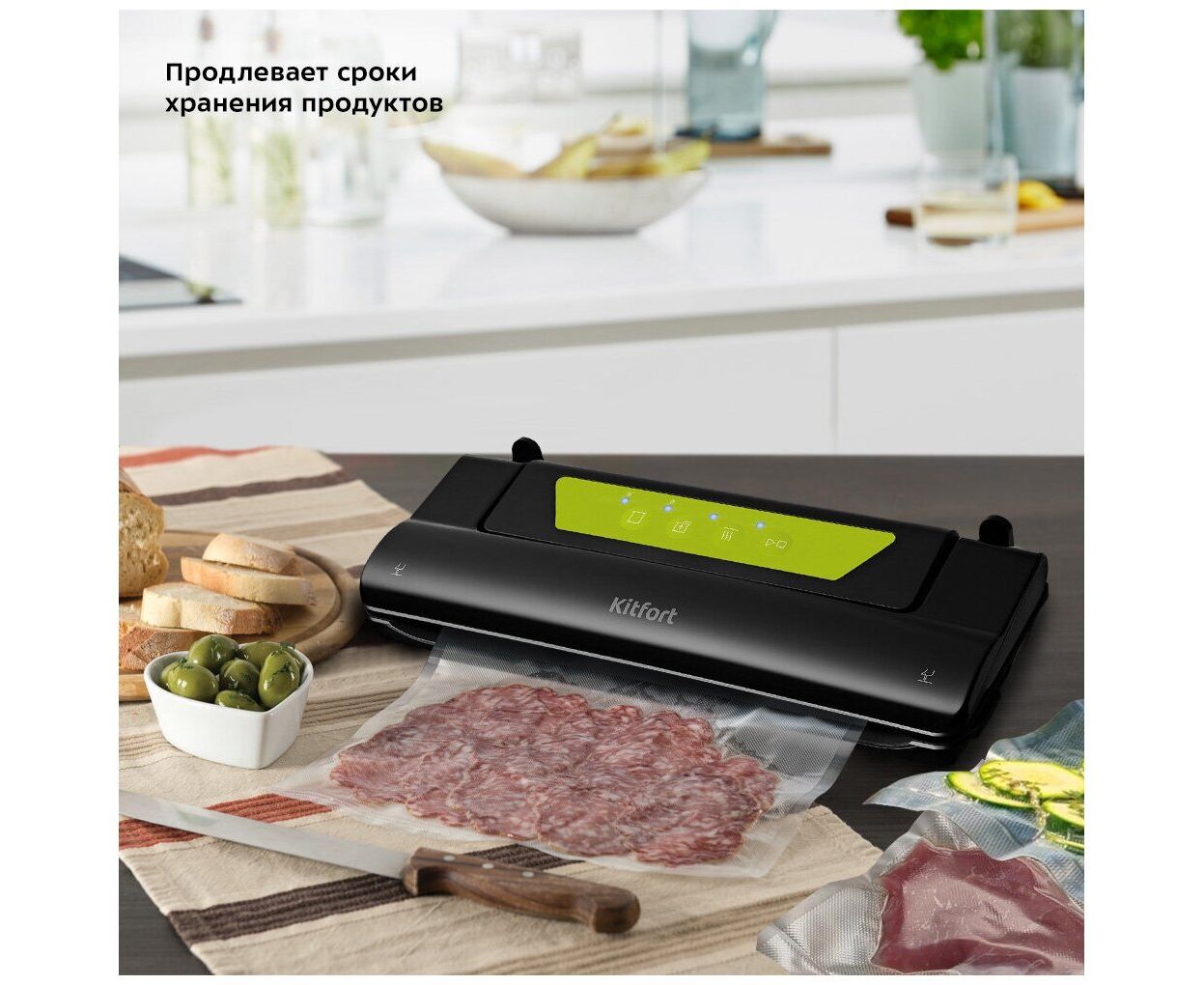 Вакуумный упаковщик Kitfort КТ-1528-2 черный/салатовый