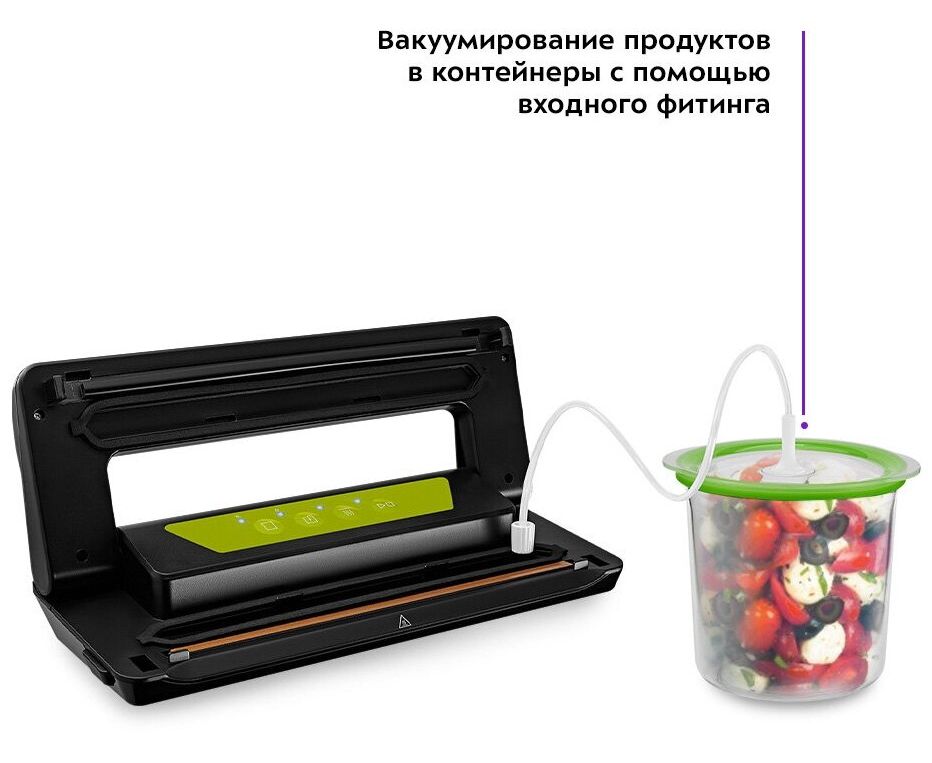 Вакууматор — устройство для вакуумной упаковки продуктов. Вакуумирование позволяет защитить от пыли, грязи, сохранить аромат и продлить сроки годности пищевых продуктов. Такой метод хранения уменьшает риск развития бактерий, которые появляются благодаря взаимодействию пищи с воздухом. Удаление воздуха из пакета гарантирует замедление процессов брожения, окисления и испарения, позволяя сохранить приятный внешний вид и качество самых разных продуктов питания.