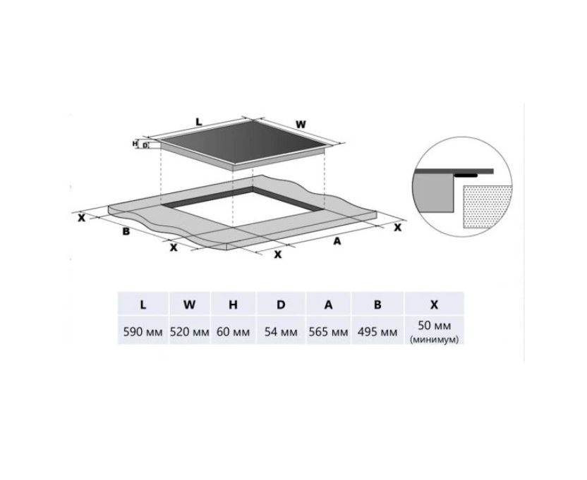 автоматическое отключение в случае перегрева, долгого простоя работающей конфорки и при намокании поверхности варочной панели.