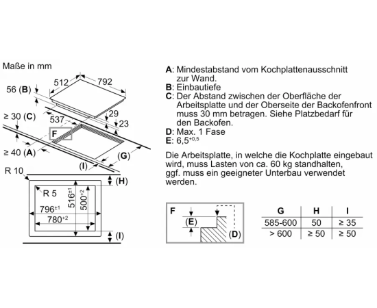 Размеры ниши для встраивания (ШхГ) 78 × 50 см