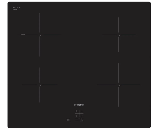 Удобство и функциональность кухни достигается использованием соответствующей бытовой техники. К ней относится и варочная панель Bosch PUG61KAA5E электрическая индукционная, встраиваемая. Она обладает высоким КПД, способна обеспечить один из самых быстрых нагревов. Также варочная панель Bosch PUG61KAA5E имеет стильный дизайн и легко станет отличным дополнением к интерьеру любой кухни. Бытовая техника выполнена в корпусе черного цвета. Основной материал изготовления устройства - стеклокерамика. Это высокопрочный, надёжный и экологически чистый материал. Стеклокерамическая варочная поверхность Bosch PUG61KAA5E превосходно выглядит, ее легко содержать в чистоте. Индукционная варочная панель располагает 4 конфорками. Конфорка передняя левая: 145 мм, 1.4 кВт. Конфорка левая задняя: 180 мм, 1.8 кВт (макс. мощность 3.1 кВт). Конфорка задняя правая: 145 мм, 1.4 кВт. Конфорка передняя правая: 180 мм, 1.8 кВт. Подключаемая мощность: 4600 Вт. Класс энергопотребления - А. Размеры рабочей поверхности - 5,1х59.2х52.2 см (ВхШхГ). Габариты ниши для встраивания - 5,1х56х49см (ШхГ). Варочная панель индукционная, особенности и преимущества: интуитивно простое сенсорное управление, функция распознавания наличия посуды, индикатор остаточного тепла, таймер с автоотключением, кабель с вилкой. Основные характеристики. PowerBoost - максимальная скорость. При готовке порой просто необходимо быстро увеличить нагрев. Усовершенствованная функция PowerBoost, в варочных панелях Bosch, повышает мощность для ускорения процесса нагрева и закипания. Просто включите конфорку и активируйте функцию PowerBoost. Чтобы дети не смогли случайно включить прибор или изменить установки, он оборудован специальной функцией "Блокировка от детей". Активация функции блокировки панели управления очень проста - достаточно перевести переключатель выбора функций в нулевое положение. И удерживать нажатой кнопку с изображением ключа 4 секунды. Все просто и ребенок защищен. При индукционном нагреве тепло генерируется в днище посуды. Сама конфорка почти не нагревается. Это обуславливает преимущества индукционных конфорок: более высокая скорость нагрева, экономичность, нет опасности серьезных ожогов, исключено пригорание, для чистки достаточно протереть поверхность салфеткой. QuickStart. Простота, удобство, точность. Просто поставьте сковороду или кастрюлю на варочную поверхность и Функция QuickStart сама активирует конфорку, на которой установлена посуда: при включении варочная панель автоматически выбирает конфорку с посудой (в выключенном состоянии). Удобство использования - 9 ступеней мощности. С функцией Power Management можно установить мощность подключения в соответствии с параметрами электросети: при необходимости ограничьте максимальную мощность (зависит от защиты электроустановки предохранителями). Необходима качественная и функциональная бытовая техника на кухню? Индукционная варочная поверхность Bosch PUG61KAA5E станет отличным выбором.