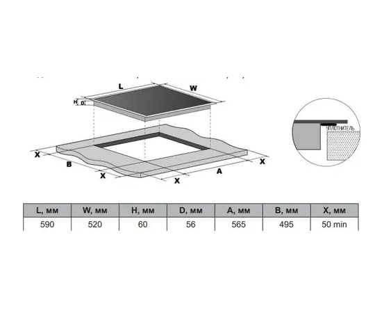 Ширина встраивания, см