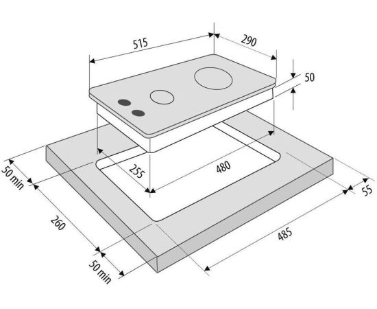 Размеры для встраивания (ШхГ) 255x480 мм