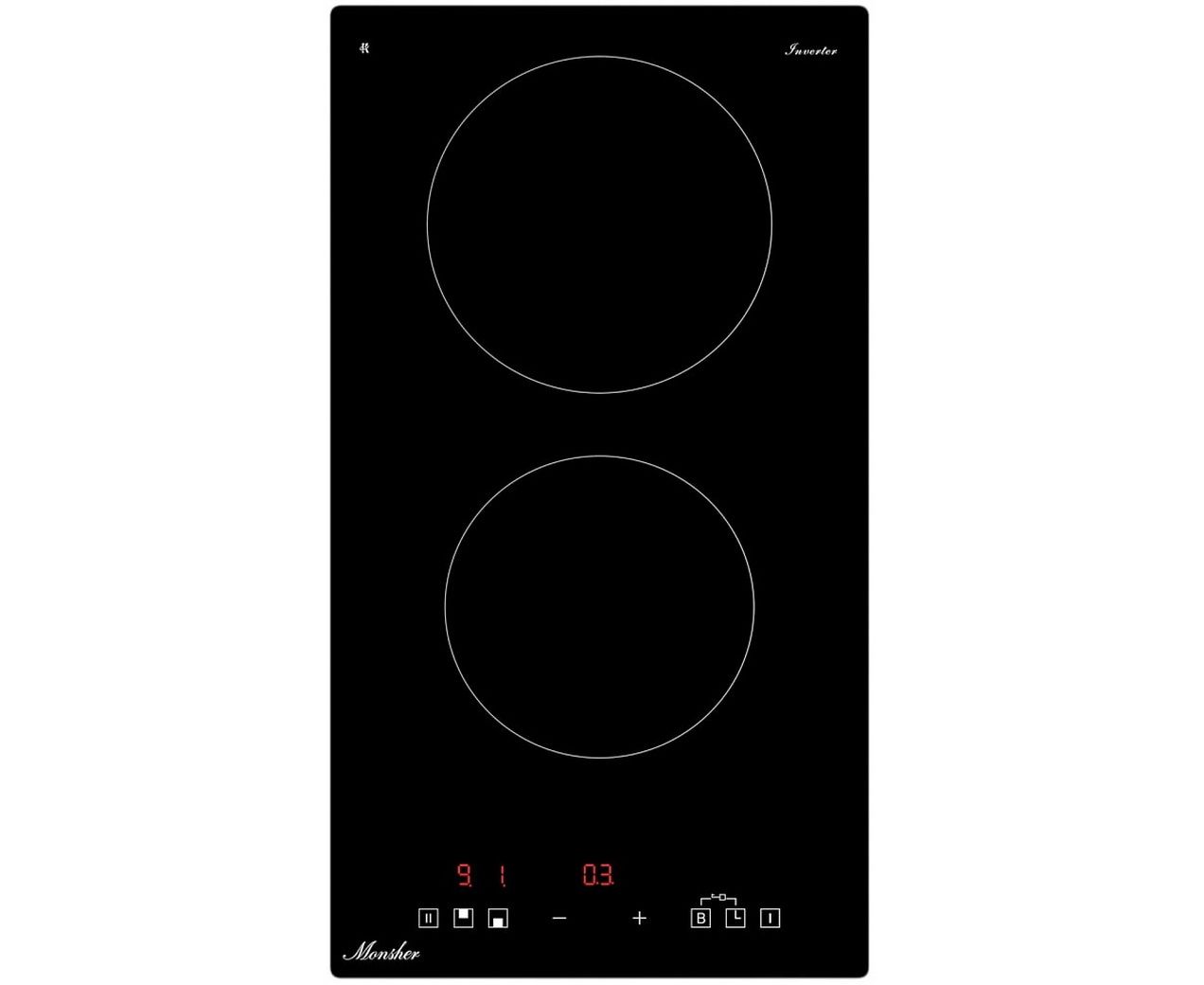 Варочная поверхность MONSHER MHI 3003 High-Tech, индукция, 30см, 2 зоны нагрева, inverter, сенсорное управление, 9 уровней мощности