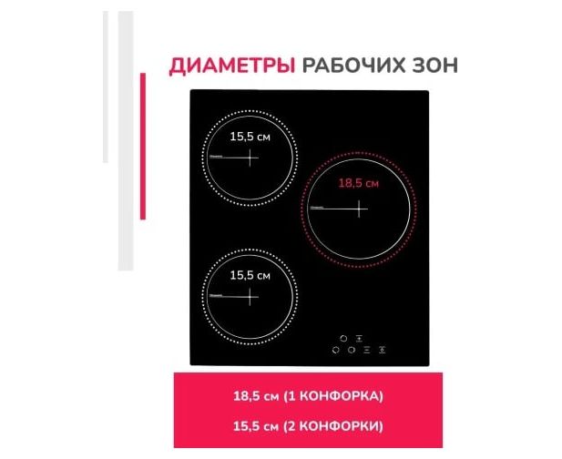 Диаметр каждой конфорки