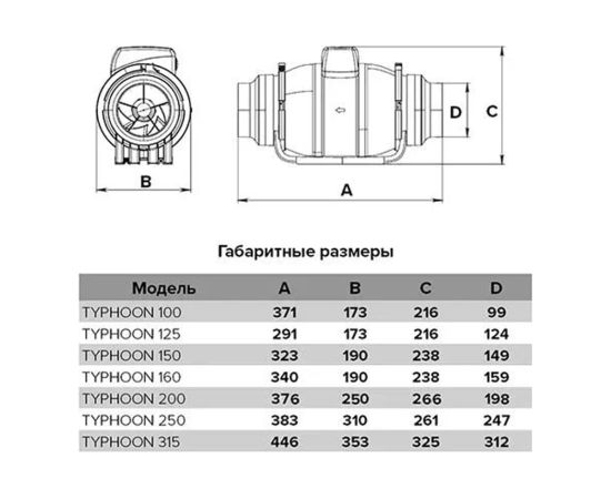 Технические характеристики ERA TYPHOON 200 2SP диаметр 200 мм