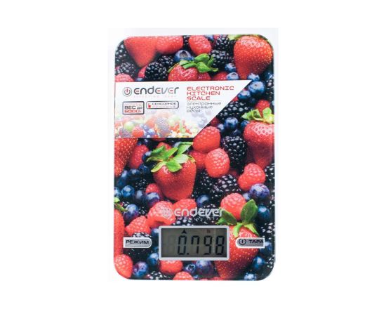 Весы кухонные электронные Endever Skyline KS-528, рисунок Ягоды, вес от 2 г до 5 кг, закаленное стекло повышенной прочности, автоматическое отключение