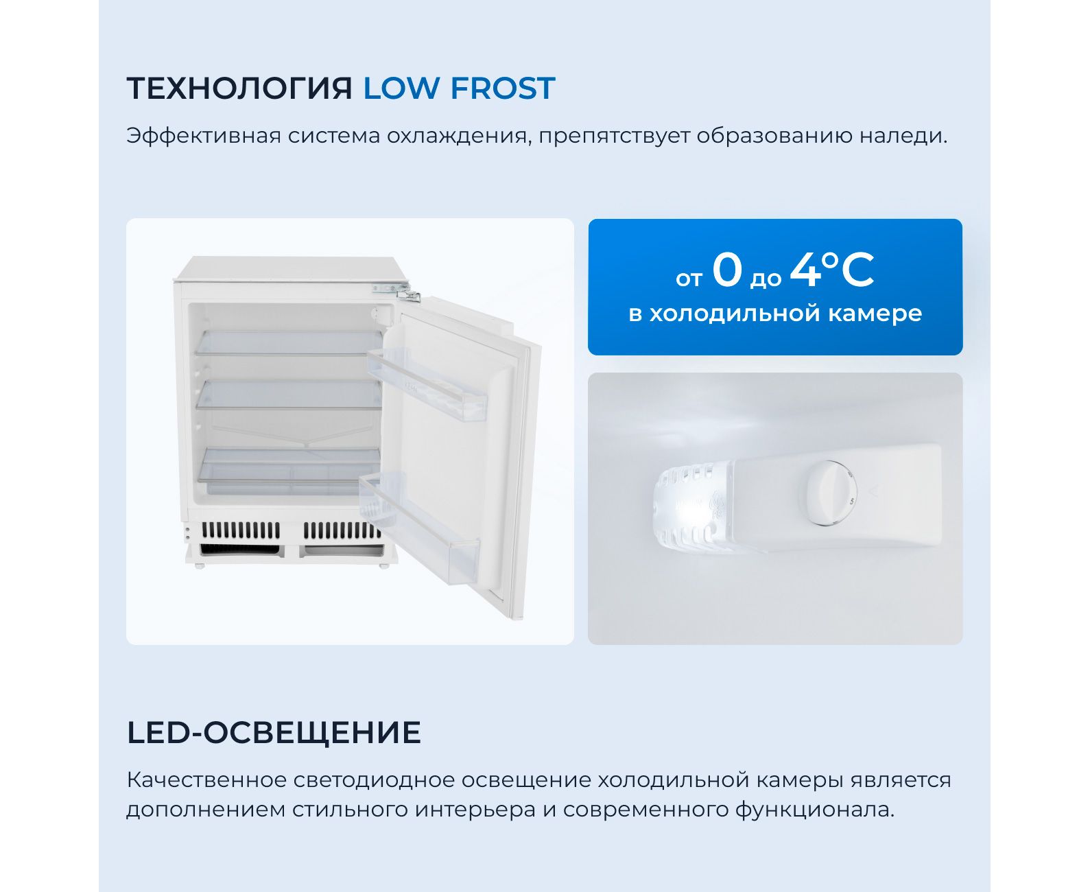 Регулировка температуры: 6 установок для поддержания температуры в камере от 0 до 4°C
