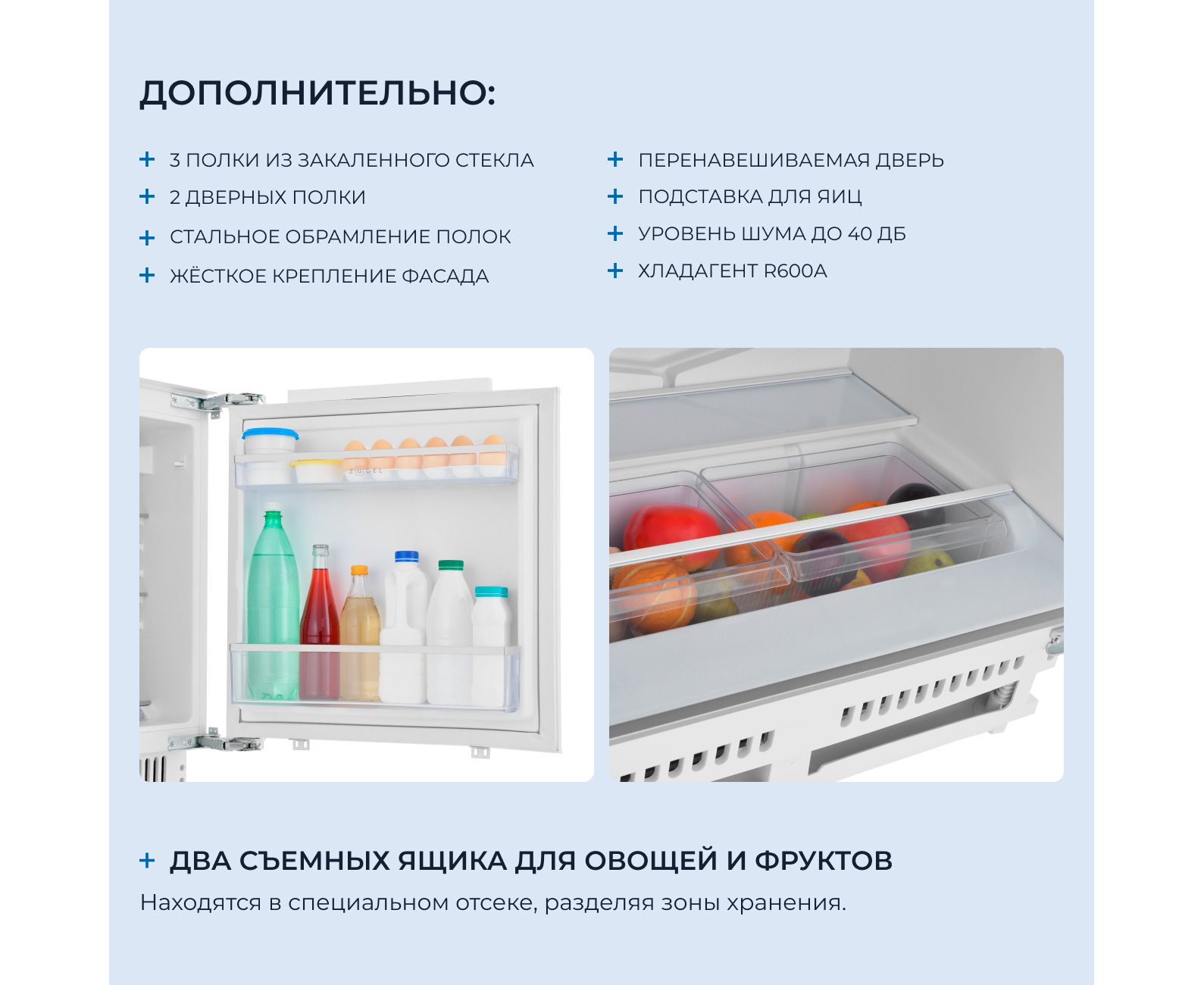 Встраиваемый холодильник ZUGEL ZRI872LF