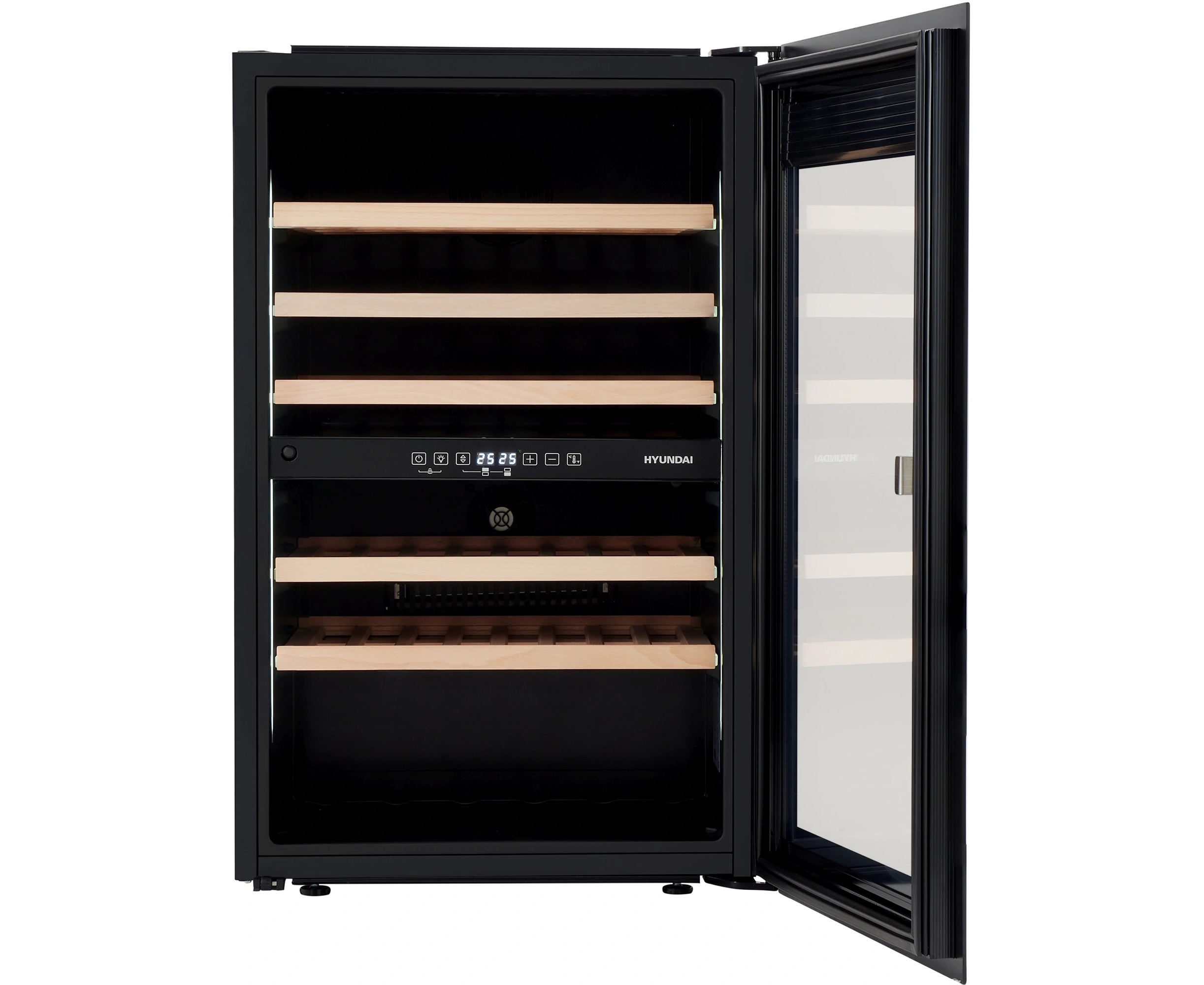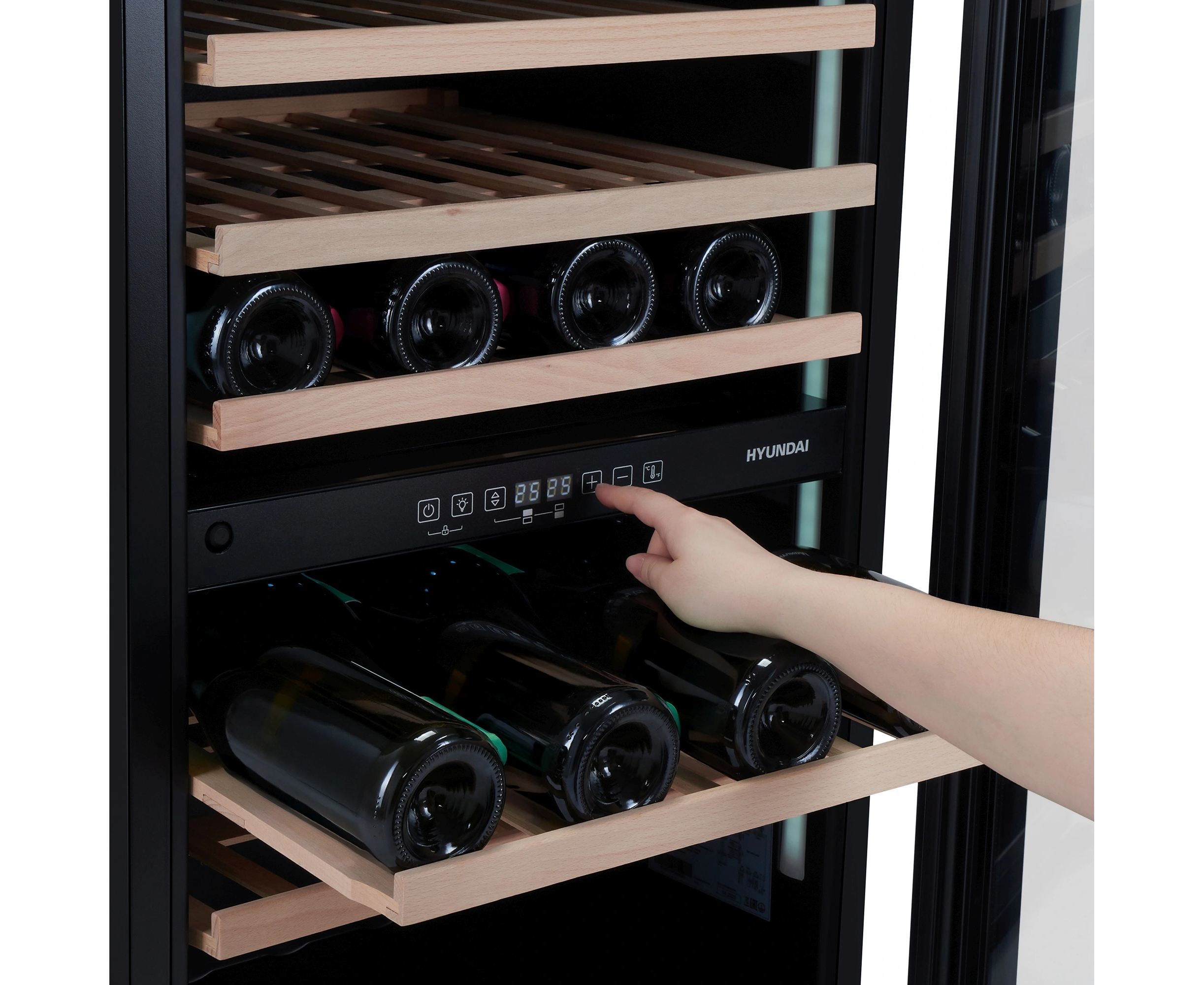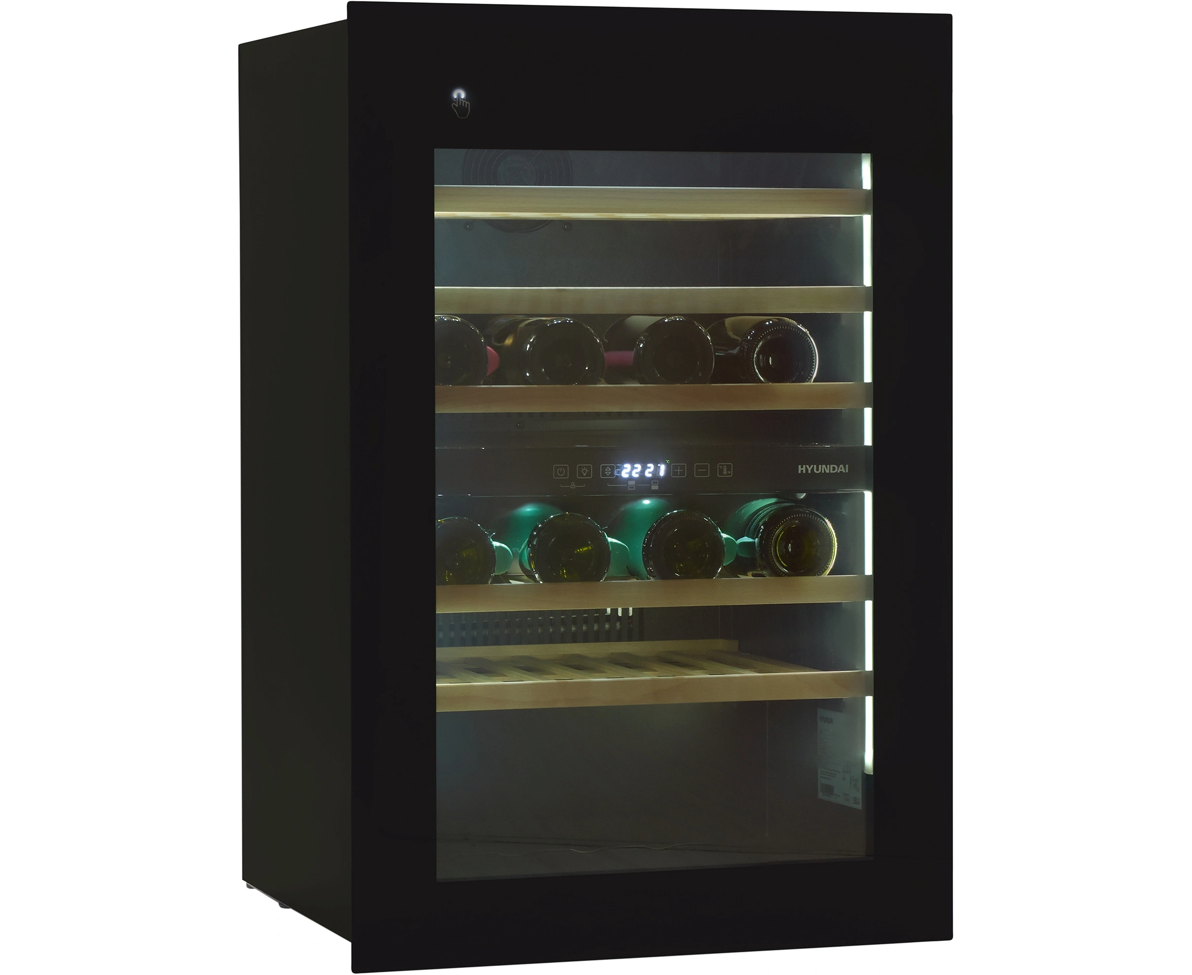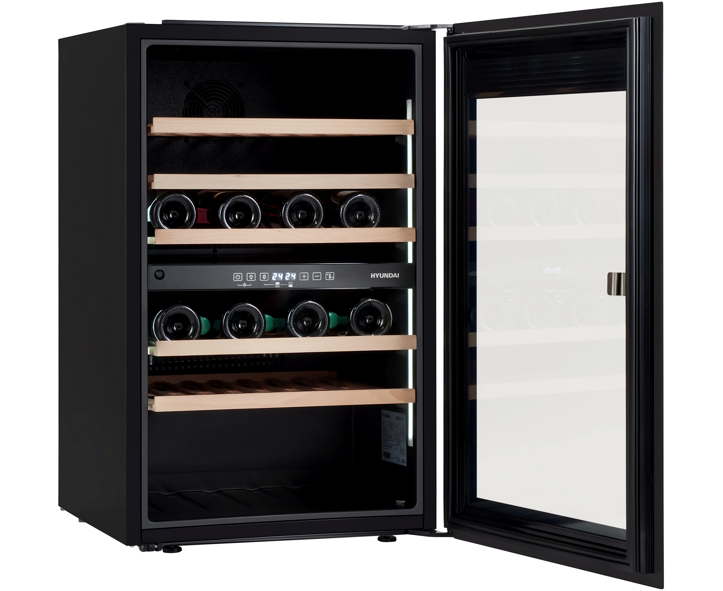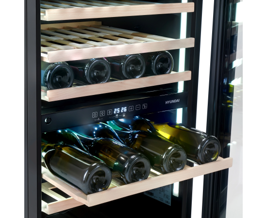 Встраиваемый винный шкаф Hyundai HBWC 0865 DCT вместимость 57 бутылок, 145л, 88.5см, черный