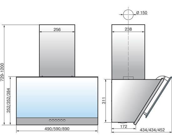 Высота вытяжки (мин / макс): 72.9x120см