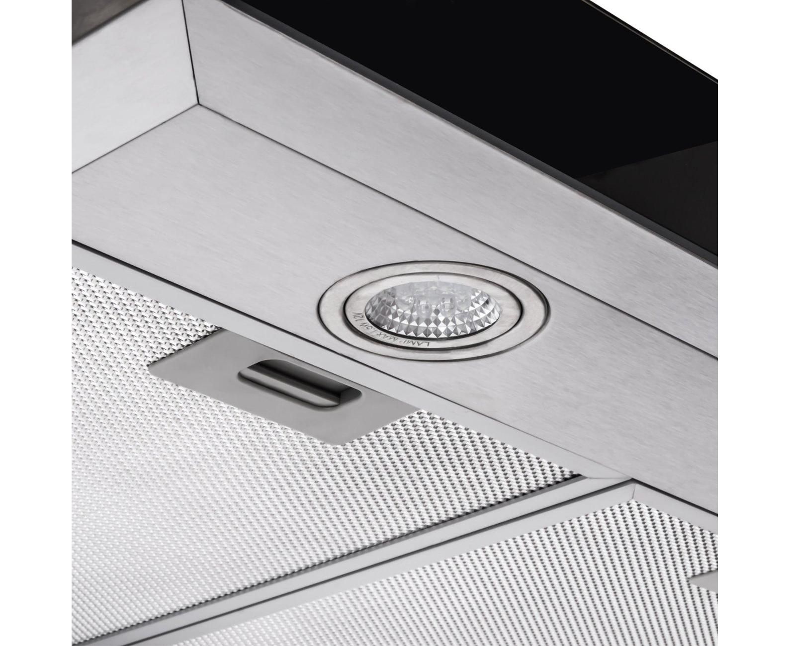 Комплект угольных фильтров E4CF01 из 2 шт. (докупается отдельно) улавливает до 95% запахов; Режим AutoCerebral: датчики дыма, пара и температуры; Индикатор загрязнения жирового фильтра; Автоматические включение и отключение
