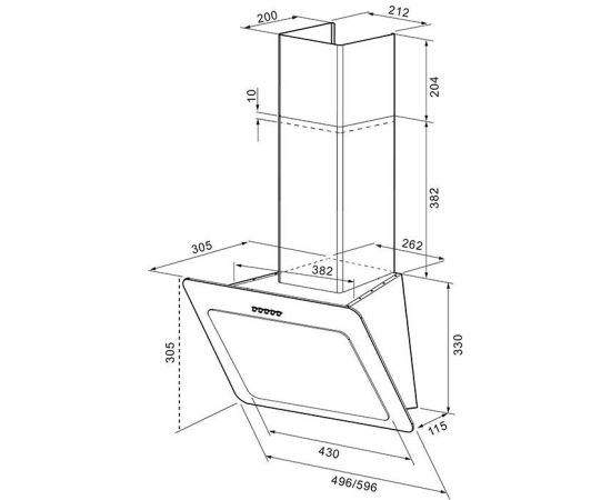 Ширина вытяжки 59.6 см