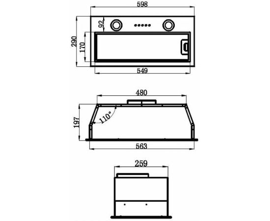 Ширина вытяжки 598 мм