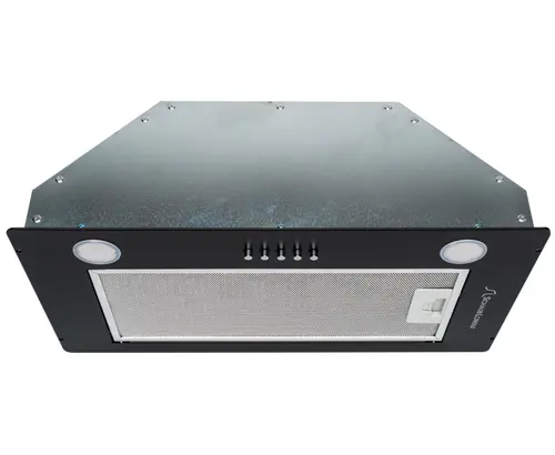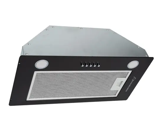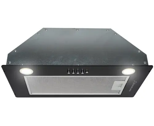 Встраиваемая вытяжка чёрного цвета изготовлена из нержавеющей стали. Встроенные светоизлучающие диоды – не только дополнительный источник света, а также незаменимые помощники в приготовлении пищи. При хорошем освещении кулинарные шедевры творить проще и комфортнее. Производительность 650 м³/ч – это высокий показатель, благодаря которому вытяжка отлично справляется с очисткой воздуха. Отвод воздуха с частицами жира и запахами происходит через трехслойный алюминиевый фильтр, который легко мыть вручную или в посудомоечной машине. При желании вытяжку можно не подключать к системе вентиляции. Для этого необходимо установить абсорбирующий угольный фильтр, который приобретается отдельно. Его замена осуществляется по степени загрязнения.